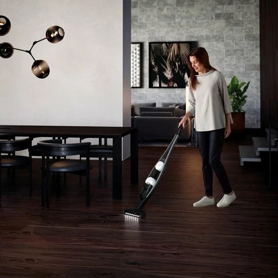 - Ook zonder de lader kan de stofzuiger gemakkelijk blijven staan door de zelf staande parkeerfunctie.