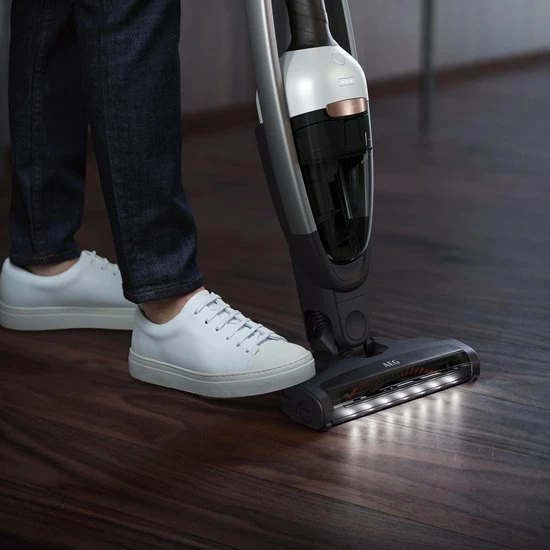 - Dankzij het volledige kantelbare slanke design, past de stofzuiger onder meubels met een hoogte vanaf de vloer van 140 mm