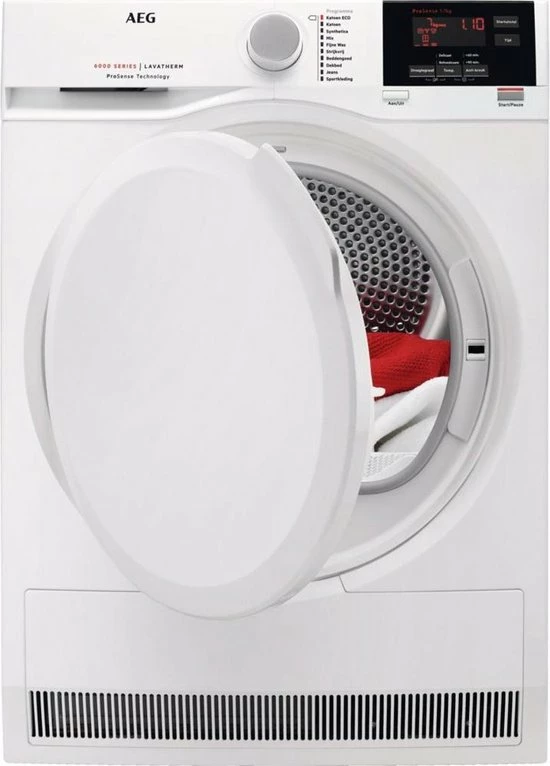 Op zoek naar een super energiezuinige eenvoudige condensdroger zonder uitgebreide extra’s? Dan is de AEG T6DB72GP ideaal voor jou. Een condensdroger droogt de was op een hoge temperatuur. Daardoor is deze relatief snel, maar een stuk minder zuinig. De vochtigheidssensor meet wanneer jouw wasgoed droog genoeg is. Het programma stopt dan automatisch, waardoor de droogbeurt nooit langer duurt dan nodig is. Op het digitale display zie je hoe lang de droger nog bezig is. De speciale kleding beschermende ProTex-trommel draait in beide richtingen waardoor je kleding minder kreukt.