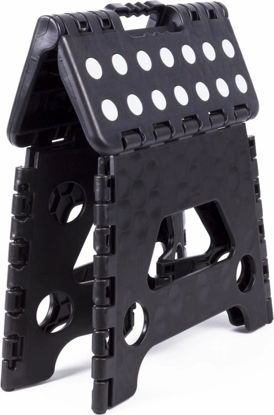 Opvouwbare Kruk Klein Zwart/Wit Deze opvouwbare kruk is zeer geschikt om te gebruiken als opstap voor bijvoorbeeld in de keuken. De kruk is zwart met witte stippen en volledig opvouwbaar waardoor je deze makkelijk kunt opbergen. De uitgevouwen afmetingen van de kruk zijn: 23x19x19 cm. Kenmerken:
