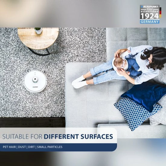 Met een gewicht van 3,35 kg beweegt deze probleemloos over verschillende vloeren, zoals harde vloeren, houten vloeren en zelfs laagpolig tapijt. Deze ondergronden zijn met een zuigkracht van 4 verschillende levels dan ook geen enkel probleem. De Bluebot maakt gebruikt van lasertechnologie om zichzelf te sturen. Dit brengt een aantal voordelen met zich mee: