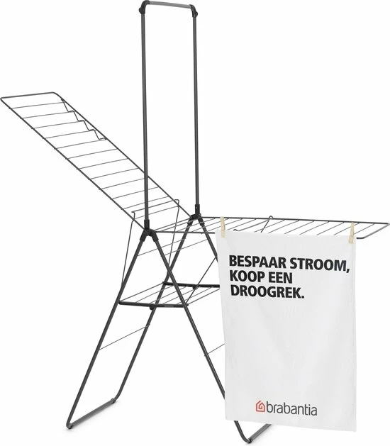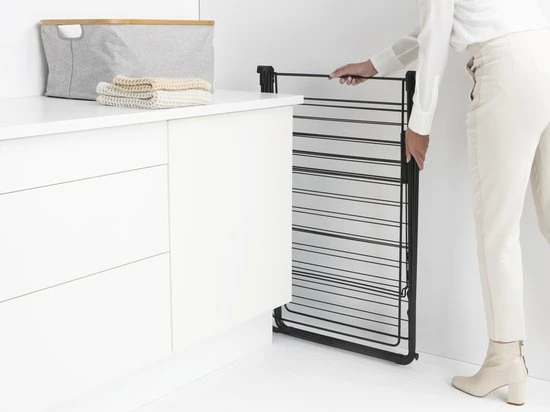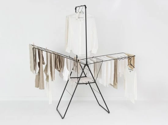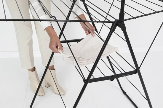 Bespaar tijd en energie door je was natuurlijk te drogen en bespaar ruimte door het met dit slimme rek te doen! Dit supersize Brabantia HangOn Droogrek – 25 meter – Matt Black geeft je de ruimte met ook nog eens 8 haken voor kledinghangers. Alles droog? Klap ‘m eenvoudig in tot een klein pakketje en berg ‘m op. Wat een kek rek!
