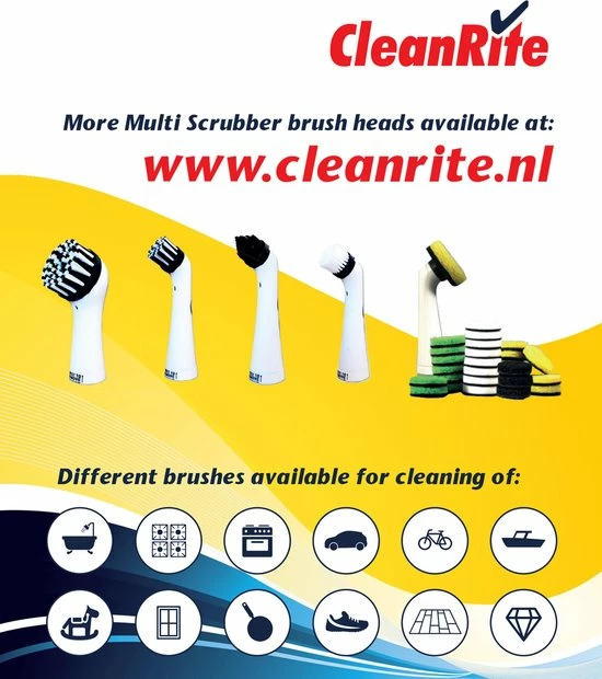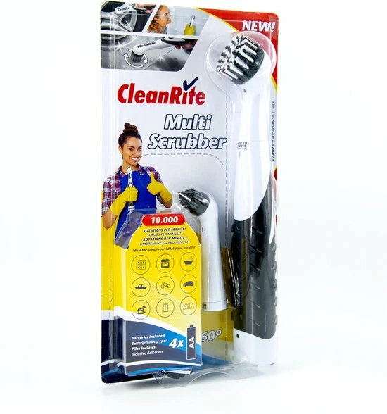 De CleanRite Multi Scrubber helpt jou om de nauwe gebieden te bereiken die je zelf amper kunt bereiken. Door de verschillende opzetborstels is de Multiscrubber multifunctioneel en geschikt voor alle denkbare oppervlaktes. Daarnaast bevat de borstel een ongeëvenaard kwaliteitsniveau. Met 10.000 scrubs per minuut is de Multiscrubber tot wel 25 keer sneller dan de menselijke hand!
