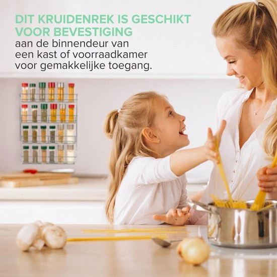 Of je nou van Indiase, Chinese, Mexicaanse of Thaise gerechten houdt, in dit keukenrek kun je al je favoriete kruiden kwijt. Tijdens het bereiden van je favoriete maaltijd heb je je kruiden altijd bij de hand: het is niet langer nodig om je potten en pannen alleen te laten om op zoek te gaan naar dat ene verdwenen kruidenpotje.