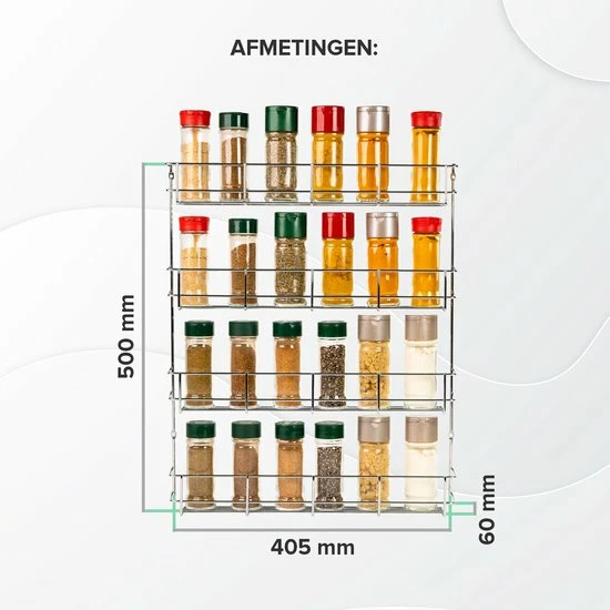 4 ETAGES: dit kruidenrek bestaat uit 4 etages en biedt ruimte voor 32 van je favoriete of meest gebruikte kruidenpotjes.
