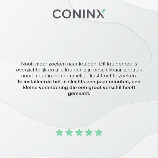 Het Coninx metalen design kruidenrek is de perfecte plek om al je kruidenpotjes te bewaren. Dit kruidenrek biedt ruimte voor maar liefst 32 kruidenpotjes. Door al je kruiden op รฉรฉn plek te bewaren, hou je het overzicht en raak je je favoriete kruiden nooit meer kwijt!