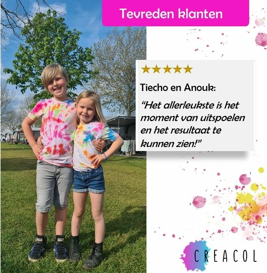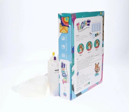 Let op! Het wordt aangeraden om de tie dye kit te gebruiken vanaf 6 jaar en ouder. Pas op met blote handen en kleding die niet gekleurd hoeft te worden. Niet inslikken of in aanraking met de ogen laten komen.