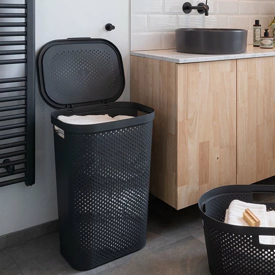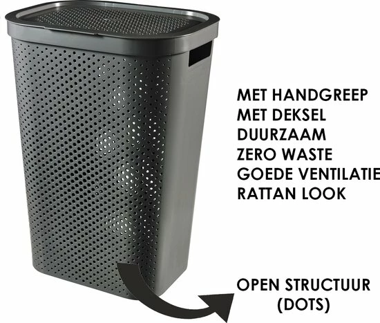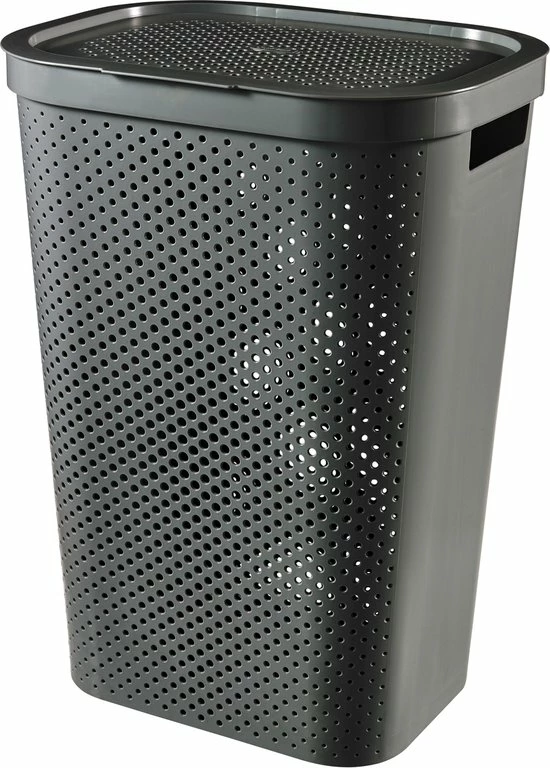 - Curver Infinity Dots Wasmand met deksel – 60L – Antraciet – Recycled Kunststof
