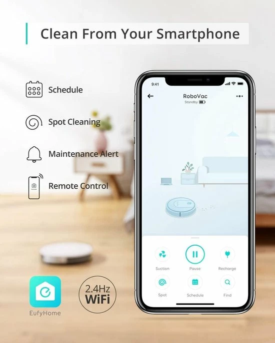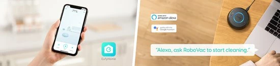 Dankzij de EufyHome-app, Amazon Alexa, of Google Assistant werkt het schoonmaken van uw woning nu heel eenvoudig. U kunt een simpele spraakopdracht geven en de Eufy RoboVac G10 Hybride gaat voor u aan de slag.
