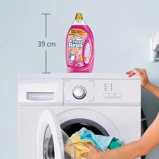 - Gebruik twee doseerbollen Frisse Reus wasmiddel voor een extra grote was.
