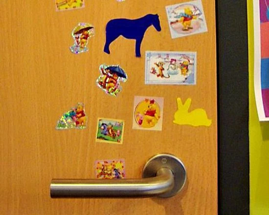 - Trekt of kruipt volledig door of onder de sticker