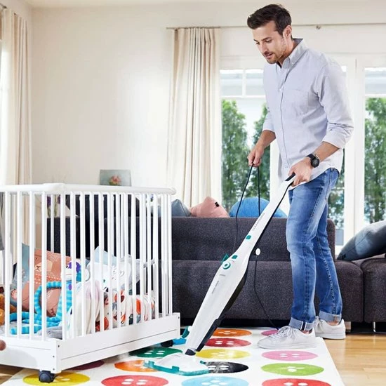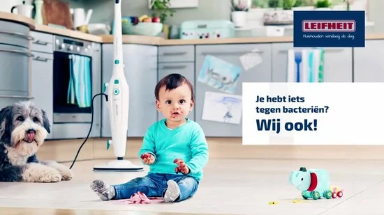 Met de Leifheit Clean Tenso wordt alles hygiรซnisch schoon โ gemakkelijk en zonder chemische reinigingsmiddelen. Met hete waterdamp verwijdert de stoomreiniger tot 99,99% van de bacteriรซn. Onmisbaar voor een vloer waar kinderen op spelen.