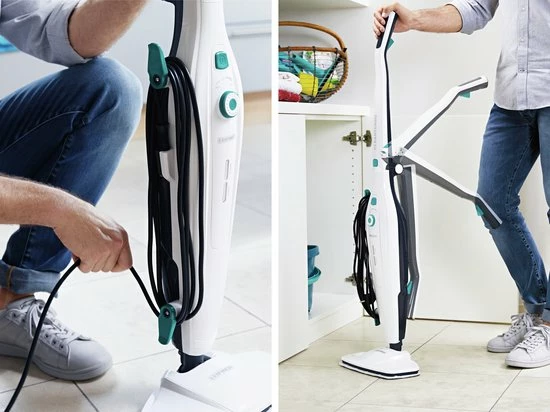 En zo eenvoudig werkt het: de stoomreiniger heeft minder dan 30 seconden nodig om op te warmen en is dan al meteen klaar voor gebruik. Als het water heet is, wordt de stoom door zes stoomopeningen gelijkmatig in de vloerwisser verdeeld. Met de traploze regelknop kun je de hoeveelheid stoom optimaal op de vloer afstemmen. De laagste stand is geschikt voor gelakte houten vloeren zoals parket en laminaat. De hoogste stand is voor grondig reinigen van stenen vloeren en tegelvloeren. De verwisselbare microvezel vloerwisser neemt het losgeweekte vuil op, zodat alles hygiรซnisch en grondig schoon wordt. Met de praktische tapijtglijder is de stoomreiniger ook geschikt voor het opfrissen van tapijt.