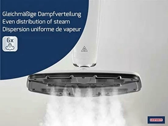 - Met zes stoomopeningen voor gelijkmatige stoomverdeling en Traploze stoomregeling, zodat je de hoeveelheid stoom optimaal af kunt stemmen op gelakte houten vloeren, stenen vloeren en tegel vloeren