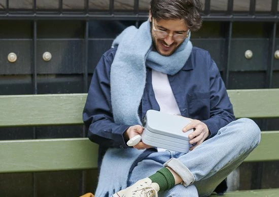Lunchbox Take a Break midi in de kleur Nordic denim. Deze handige donker blauwe broodtrommel van Mepal is geschikt voor maximaal 4 boterhammen en voorzien van een afdichtring die de inhoud altijd lekker vers houdt. Het eten kan goed gescheiden worden door middel van een verdeelshotje. Neem vanaf nu dus uw eigen lunch mee in de Take a Break lunchbox van Mepal. Dat is niet alleen goedkoop, maar ook lekker en super gezond! Het is een lunchbox voor volwassenen, maar kan ook gebruikt worden als lunchbox of broodtrommel voor kinderen. De brooddoos voor volwassenen is beschikbaar in verschillende kleuren en maten.