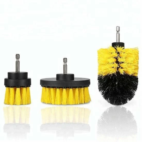De borstels passen op elke (accu)boormachine door de universele zeskantige aansluiting.