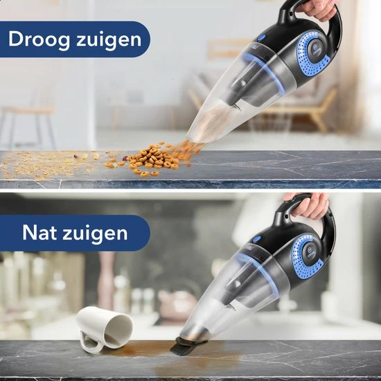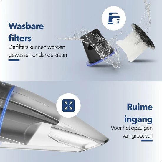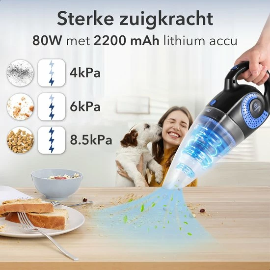 Altijd al een handige compacte handstofzuiger willen hebben? Dan is dit je nieuwe maatje. Met zijn sterke zuigkracht 85000PA ben jij degene die de baas is over de kruimels. De kruimelzuiger is voorzien van een Hepa 12 filter om de kleinste deeltjes op te zuigen. En je kan met deze kruimeldief ook geknoeide vloeistoffen de baas. Zoals water, melk, sap etc. Niet geschikt voor oplosmiddel houdende vloeistoffen en urine !!!!