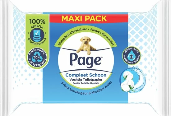 Page Compleet Schoon Maxi vochtig toiletpapier is onmisbaar voor een hygiรซnisch en schoon gevoel.