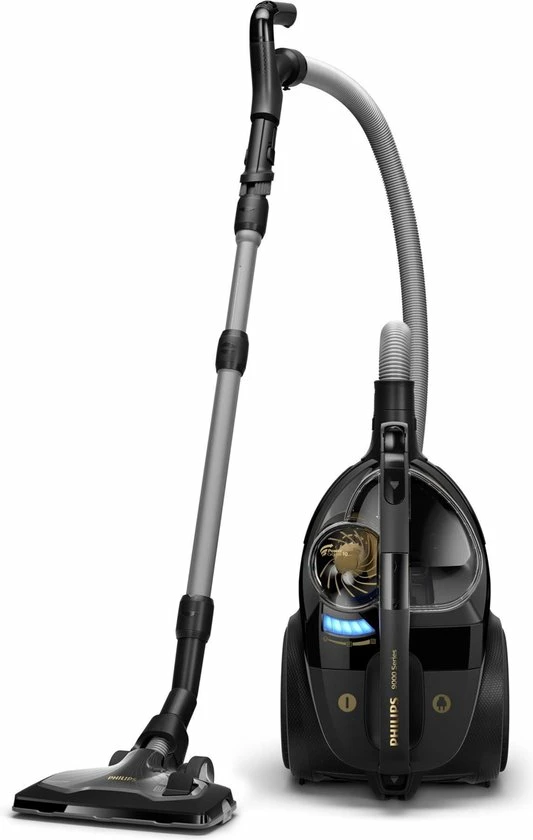 De stofzuiger zonder zak series 9000 heeft de hoogste zuigkracht in zijn klasse, dankzij de krachtige en efficiรซnte 900W motor. Met een stofopname van 99,9% is deze stofzuiger geschikt voor een diepe reiniging van harde vloeren tot hoogpolig tapijt. Het innovatieve TriActive Ultra-mondstuk reinigt grondig en langs alle kanten, zowel voorwaarts als achterwaarts. Dankzij de ergonomische handgreep, met geรฏntegreerde afstandsbediening, is stofzuigen nooit zo comfortabel geweest. De grote roterende turboborstel is ideaal voor het verwijderen van hardnekkig vuil uit jouw tapijt.