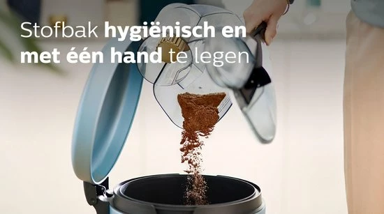 De stofbak is ontworpen zodat deze hygiรซnisch kan worden verwijderd en met รฉรฉn hand geleegd kan worden. De NanoCleantechnologie zorgt dat stof naar de bodem van de bak glijdt, waardoor stofwolken bij het leegkappen en morsen van stof en vuil wordt voorkomen.