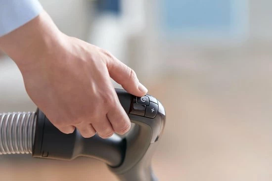 Stofzuigen is nog nooit zo comfortabel geweest, dankzij de ergonomische handgreep met geรฏntegreerde afstandsbediening en krachtregeling. Met behulp van de handgreep is de stofzuiger eenvoudig en comfortabel te manoeuvreren. Dankzij de afstandsbediening hoef je niet te bukken om de stofzuiger aan of uit te zetten, of de zuigkrachtinstelling te wijzigen.