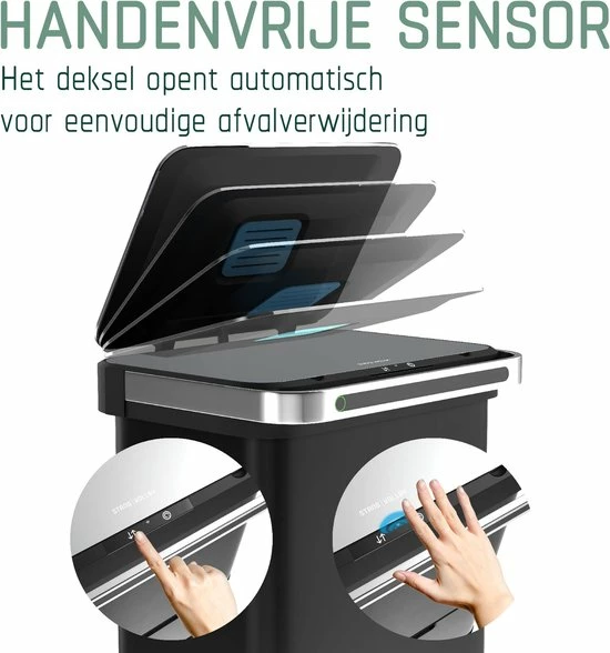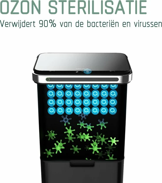 - HYGIËNISCH – Wanneer de geïntegreerde Ozon sterilisatie functie* wordt geactiveerd, verwijdert deze afvalemmer automatisch 90% van de bacteriën en virussen. Dit zorgt voor optimale hygiëne!