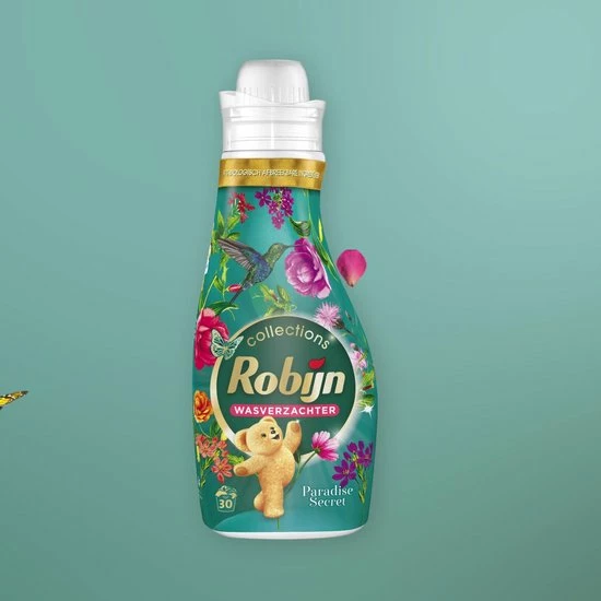 Laat je verrassen door de botanische geur van Robijn Collections Paradise Secret wasverzachter. Robijn heeft de geur van deze Collections wasverzachter verbeterd, zodat je kunt genieten van zacht wasgoed en een nóg betere geurervaring. Het frisse, bloemige parfum van deze wasverzachter is ontworpen door parfumexperts en zorgt voor een nog langer durende frisheid van je wasgoed. Robijn wasverzachter bevat geurcapsules die ervoor zorgen dat je de frisse geur van je wasgoed ook tijdens het dragen blijft ruiken. Met Robijn geniet je dus van extra langdurige frisheid van je wasgoed. De wasverzachter combineert de unieke geur van een beetje glamour met de zachtheid die je van Robijn wasverzachters kent. De wasverzachter zorgt ook voor een speciale beschermlaag rondom de vezels van de stof. Dit zorgt ervoor dat er minder wrijving ontstaat tussen de vezels, met als gevolg dat je kleding zijn kwaliteit behoudt doordat het minder snel slijt en zijn pasvorm en kleuren behoudt. Daarnaast is je kleding makkelijker strijkbaar door de wasverzachter en droogt het sneller. De Robijn Collections Paradise Secret wasverzachter bevat ingrediënten die voor 95% biologisch afbreekbaar zijn. De resterende 5% is om de kwaliteit en veiligheid van het product te garanderen. Hierdoor blijft je kleding heerlijk zacht en zorg je tegelijkertijd beter voor het milieu. Combineer met het bijbehorende Robijn Collections Paradise Secret wasmiddel om zo lang mogelijk te genieten van alle stralende kleuren en heerlijke geuren in je kast.