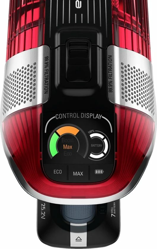 Het controle display laat jou live zien wat het vermogen en de autonomie is en zorgt zo voor de meest effectieve schoonmaak sessies. De 3 geavanceerde standen voldoen aan al jouw behoeften. De eco-stand is ideaal voor de dagelijkse schoonmaak sessies en gemakkelijk te gebruiken op alle oppervlakken. Daarnaast kun je tot wel 45 minuten stofzuigen in deze stand met gebruik van de kruimelzuiger. De Max stand zorgt ervoor dat je nog krachtiger stofzuigt, bijvoorbeeld handig op tapijt, om groter vuil op de zuigen of om beter (dieren)haren te verwijderen. De boost trigger zorgt voor nog meer zuigkracht indien nodig.