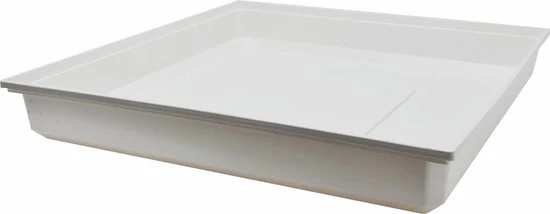 Handige kunststof opvangbak van Sanivesk voor het opvangen van water bij eventuele lekkage van een (vaat)wasmachine. Maat passend voor de meeste wasmachines.