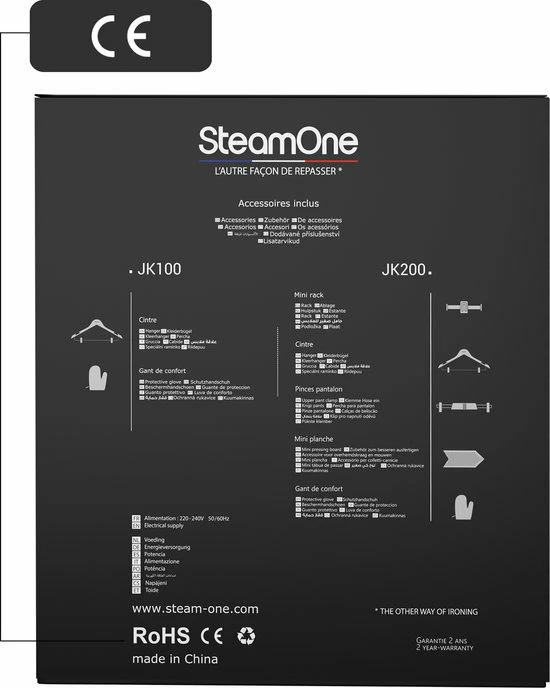 Belangrijkste kenmerken SteamOne JK100B kledingstomer