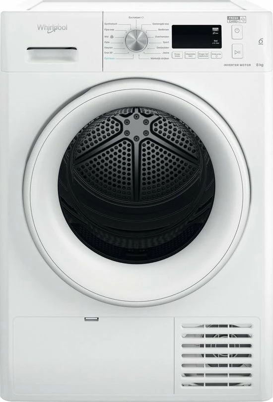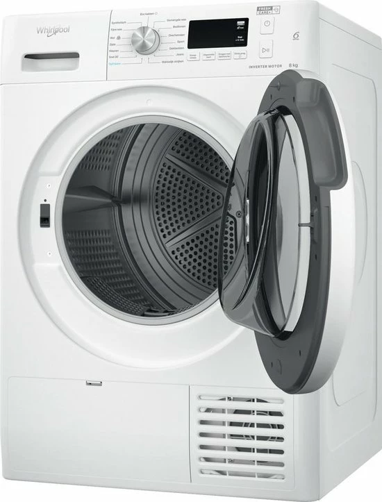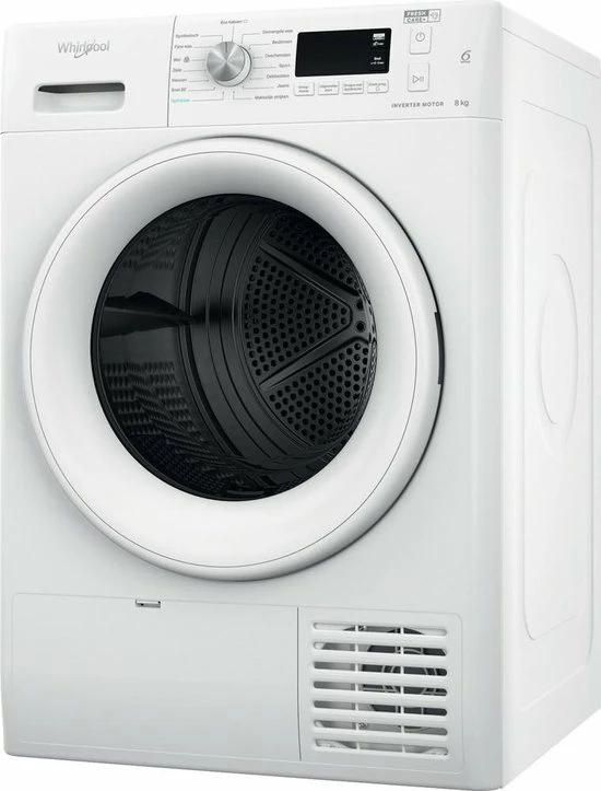 De Whirlpool vrijstaande warmtepompdroger FFT M11 82 NL beschikt over een royale trommelcapaciteit van 8 kg. De exclusieve 6th SENSE technologie bewaakt constant de vochtigheidsgraad in de trommel, beschermt uw kleding en geeft ideale droogresultaten. Warmtepomptechnologie verwarmt de lucht in de droger effectief opnieuw, voor een aanzienlijk lager energieverbruik. FreshCare+ garandeert dat je kleding fris blijft in de machine, zelfs tot 6 uur na het einde van de cyclus.