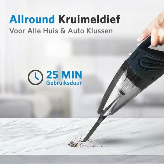 Met de Wonixยฎ snoerloze stofzuiger kunt u zich vrij bewegen van kamer naar kamer zonder het gedoe van een snoer. Lichtgewicht en ergonomisch ontworpen, zijn platte basis maakt het gemakkelijk om rond te schuiven terwijl u uw vloeren en zithoek schoonmaakt. Ideaal voor thuis, huisdieren, kantoor, auto.