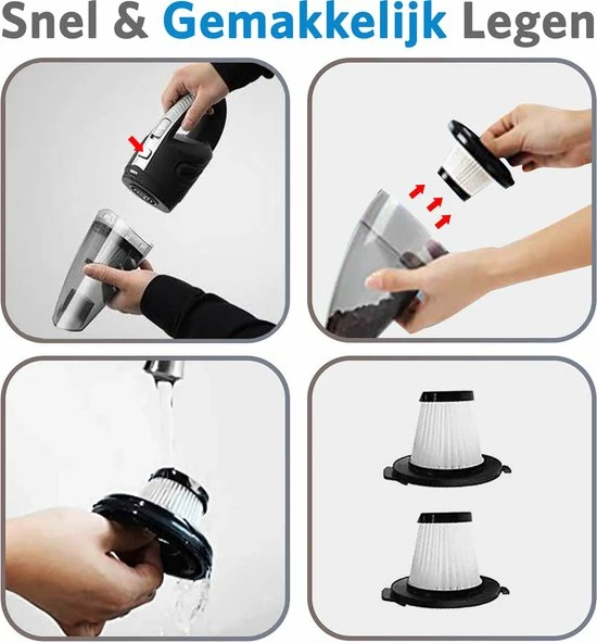De handstofzuiger is uitgerust met cyclonale zuigtechnologie en biedt een robuuste en langdurige zuigkracht, zodat u gemakkelijk haren van huisdieren, vloeistoffen, vuil, grof zand en onzichtbare stofdeeltjes kunt verwijderen. Onze HEPA-filter is gemaakt van roestvrij staal en spons, die gemakkelijk kan worden verwijderd, hergebruikt, gereinigd en effectief water geblokkeerd.